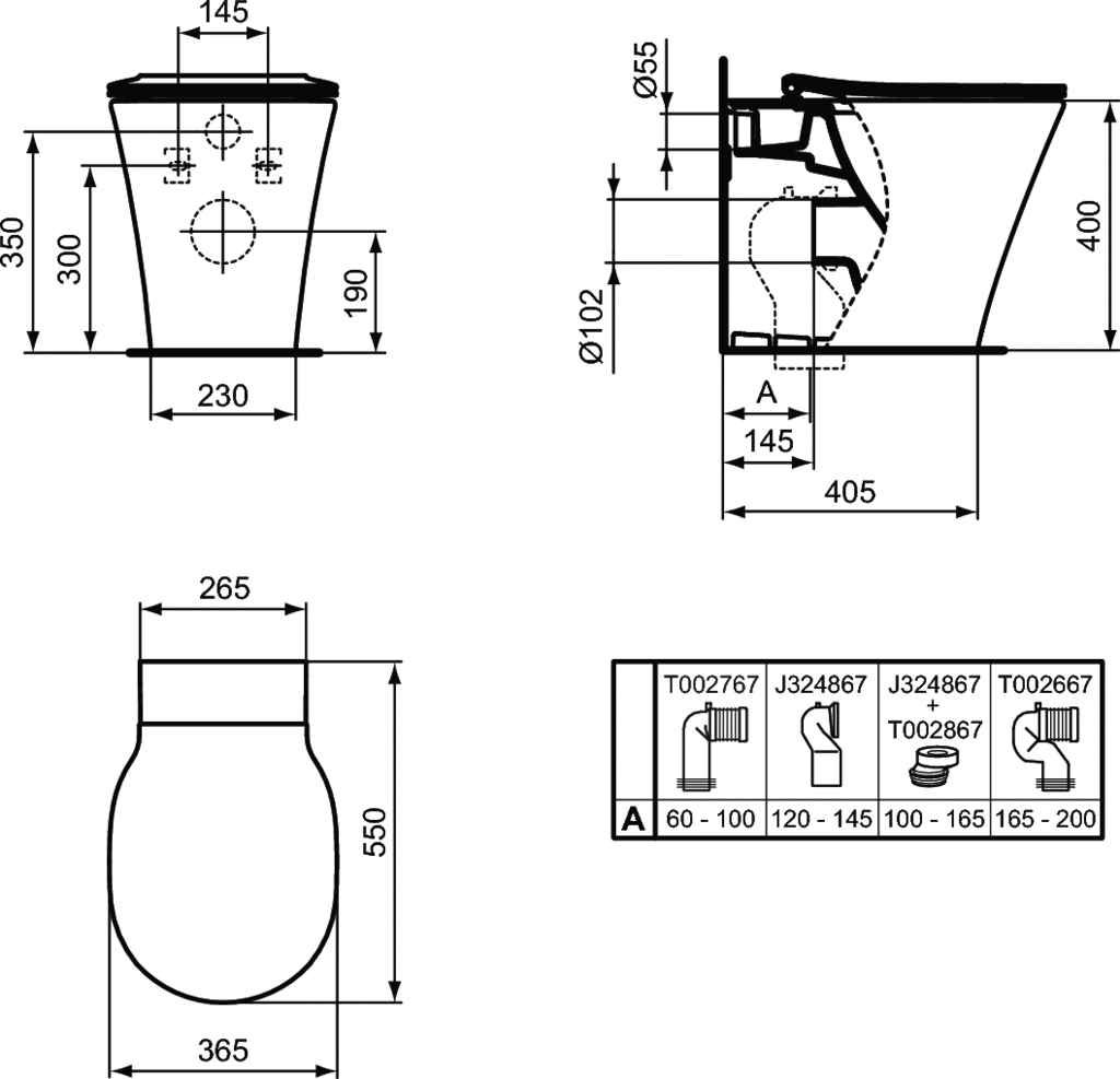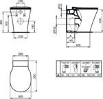CONNECT AIR AquaBlade® Напольный пристенный унитаз соло, горизонтальный выпуск (может дополняться пластиковыми выпускными патрубками на 90˚), глубокий смыв, сидение и крышка E036501 или E036601 заказывается дополнительно, с крепежом TT0293851