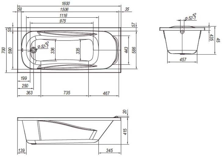 Толщина ванны, мм
