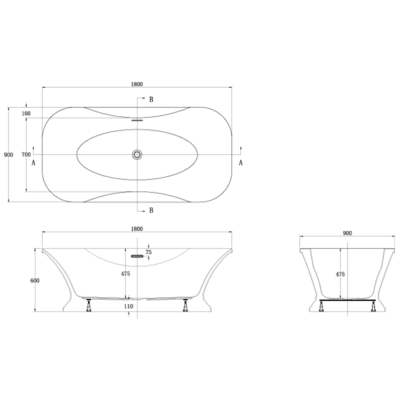 Ванна акриловая AZARIO BORDEAUX 1800x900x600, свободностоящая, в комплекте с сифоном и металлической BOR18090