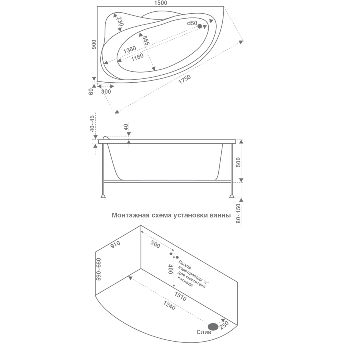 Ванна акриловая Azario Галант 150х90 пристенная, левая ГАВ0001