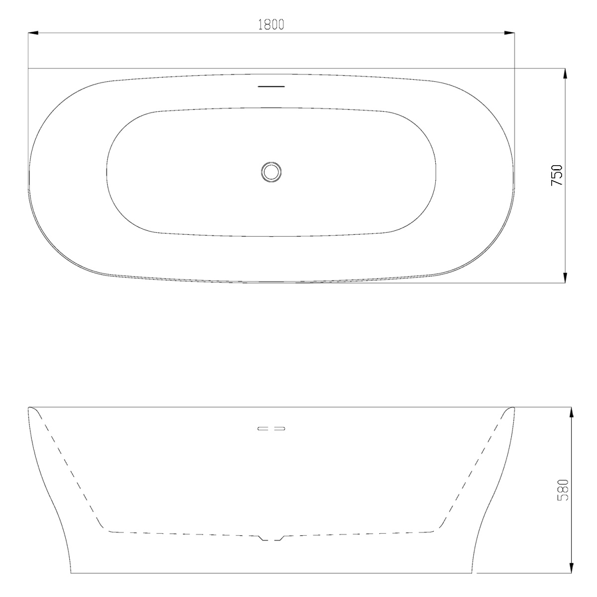 Ванна акриловая Azario OLEAN 1800x750x580 пристенная, в комплекте с сифоном и металлической рамой O OLE18075