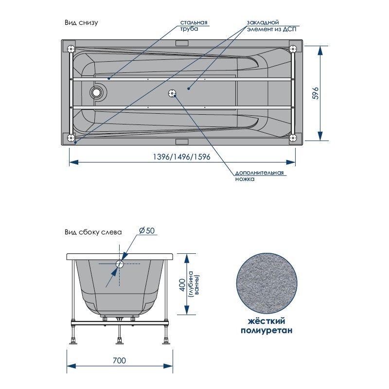 Ванна акриловая Loranto CALGARY 1600х700 CS00063078