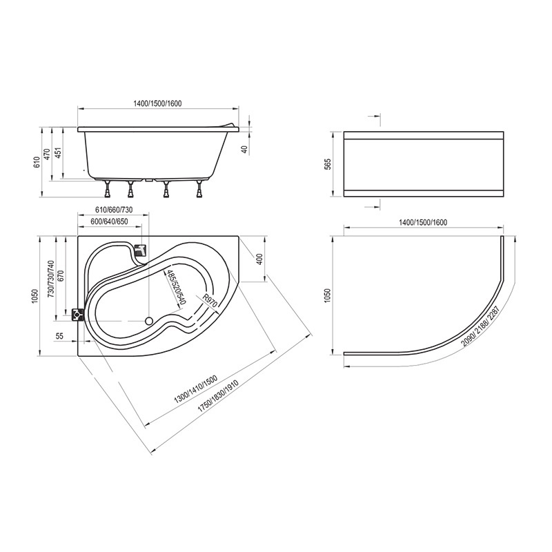 Ванна акриловая Ravak ROSA 160×105, правая, белая CL01000000