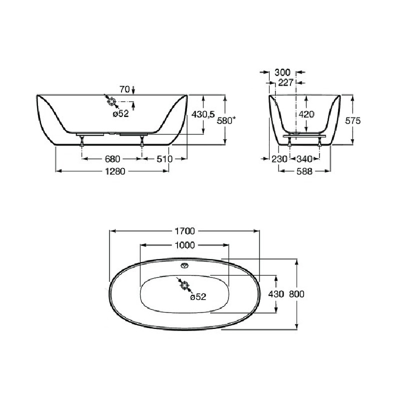 Ванна акриловая Roca VIRGINIA 170×80, белая 7.2483.1.300.0