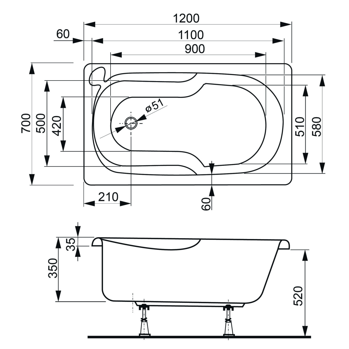 Толщина ванны, мм