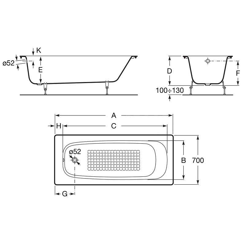 Ванна чугунная Roca CONTINENTAL 160х70, без покрытия, без ручек 7.2129.0.200.R