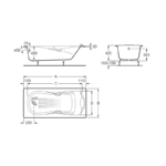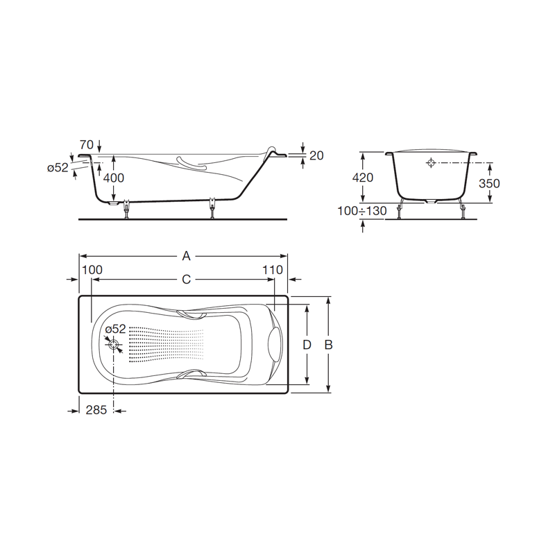 Ванна чугунная Roca HAITI 140х75, противоскользящее покрытие, отверстия для ручек 7.2331.G.000.0