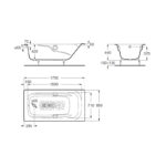 Ванна чугунная Roca MING 170х85, противоскользящее покрытие, с ручками 7.2302.G.000.R
