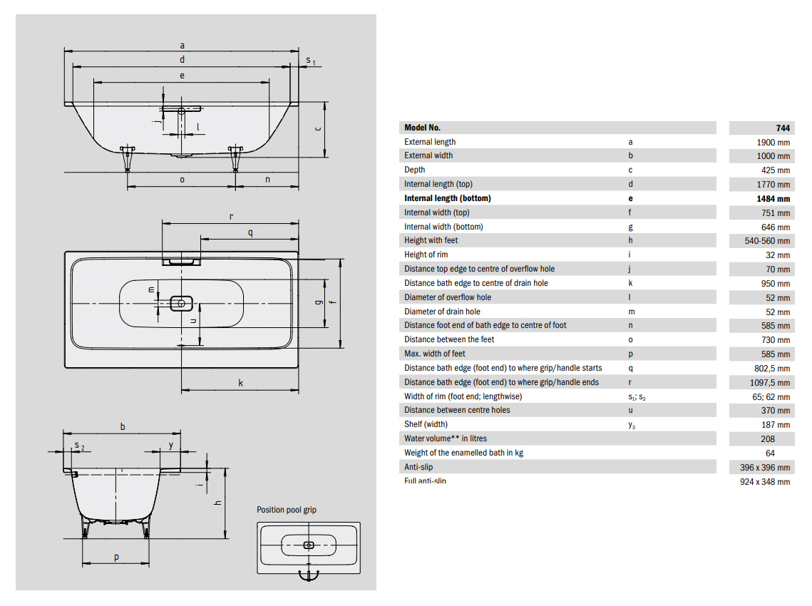Ванна стальная Kaldewei ASYMMETRIC DUO, 1900х1000х420, alpine white, без ножек 274400010001