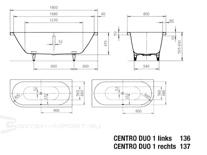 Ванна стальная Kaldewei Centro Duo Standard 180х80 см левая 283600010001
