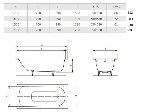 Ванна стальная Kaldewei Eurowa 150х70х39, alpine white, без ножек, с отверстиями для ручек 119621020001