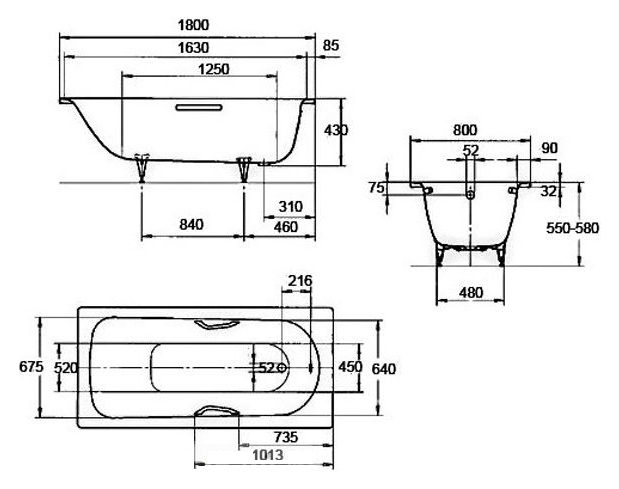 Ванна стальная Kaldewei SANIFORM PLUS 1800х800х410, Easy clean, alpine white, без ножек 112800013001