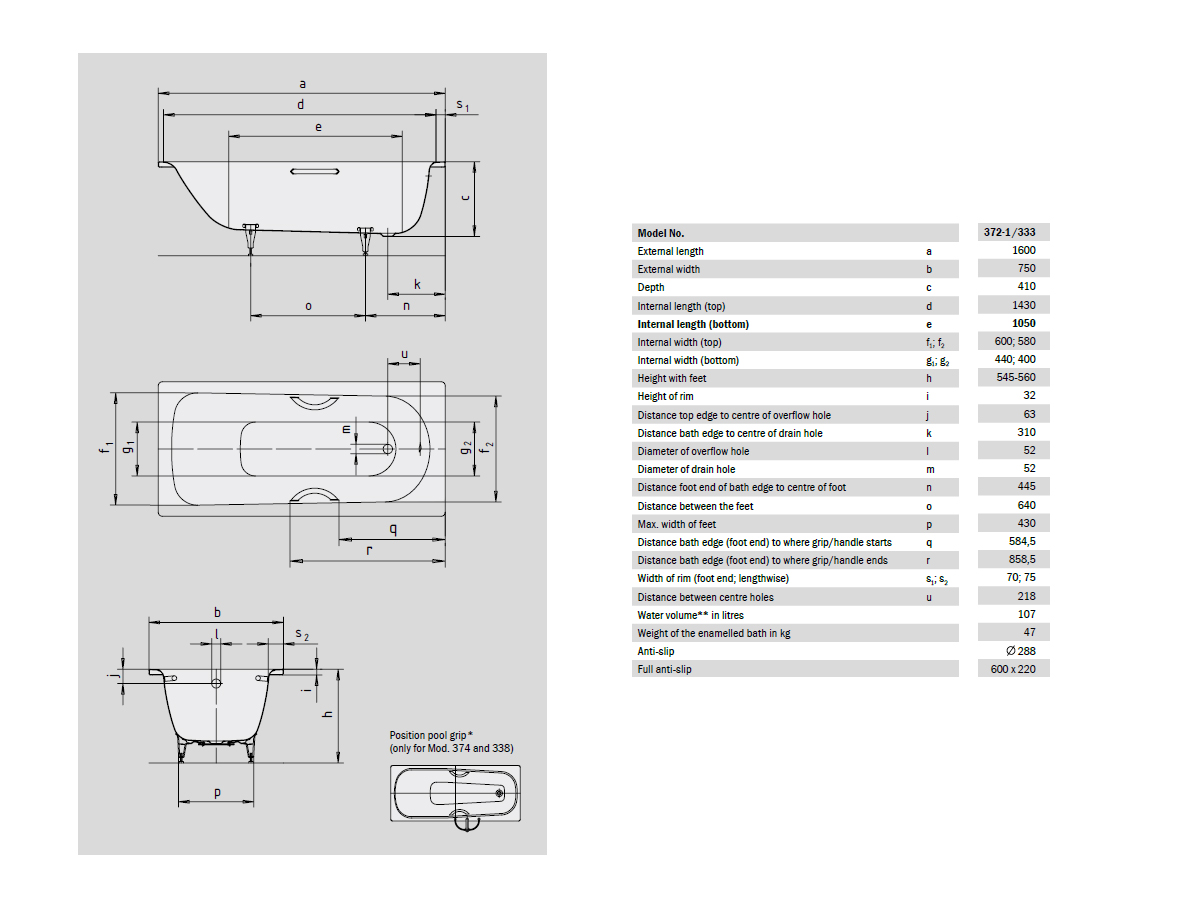 Ванна стальная Kaldewei SANIFORM PLUS STAR 1600х750х410, alpine white, без ножек, с отверстиями для 133300010001