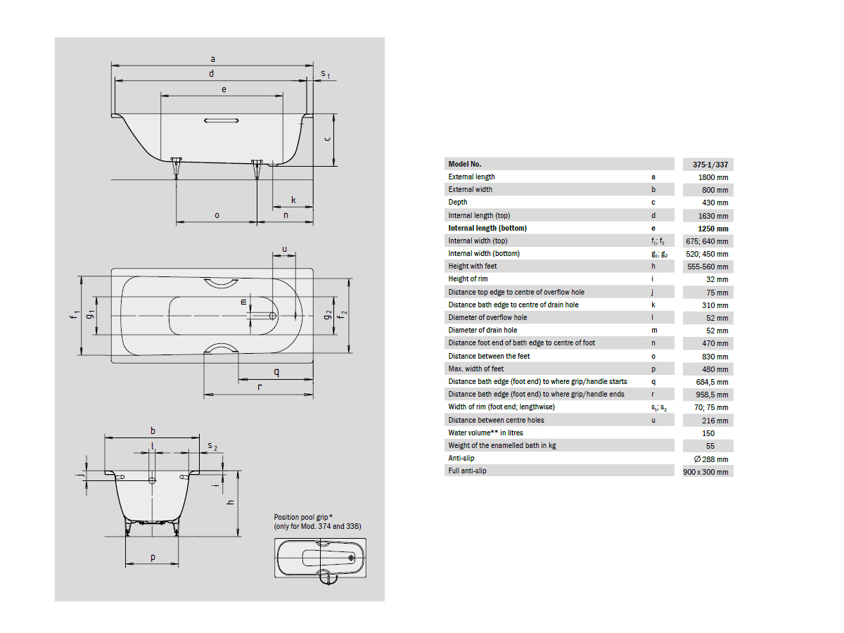 Ванна стальная Kaldewei SANIFORM PLUS STAR 1800х800х410, Easy clean, alpine white, без ножек, с отве 133700013001
