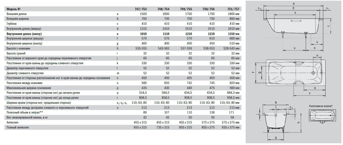 Ванна стальная серия Kaldewei CAYONO mod.749, размер 1700х700х410 мм, Easy Clean, alpine white, без 274900013001