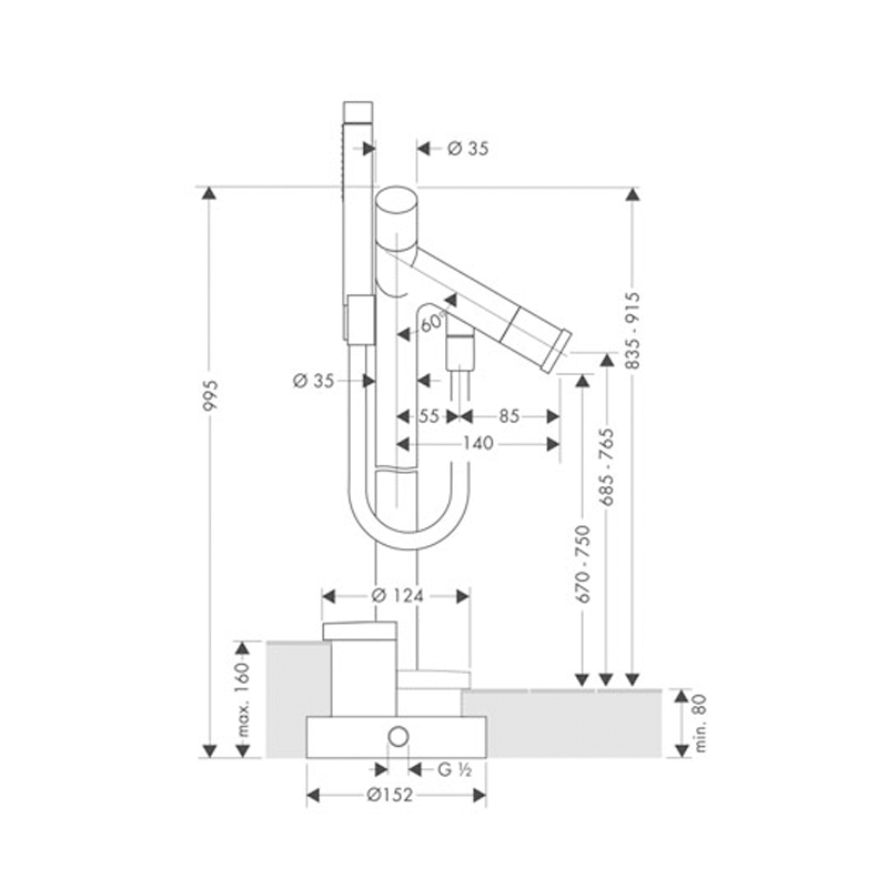 Высота излива см