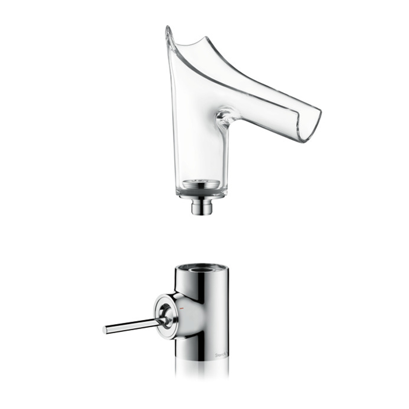 AXOR Starck V Смеситель для раковины, однорычажный, со стеклянным изливом, с незапираемым сливным на 12112340