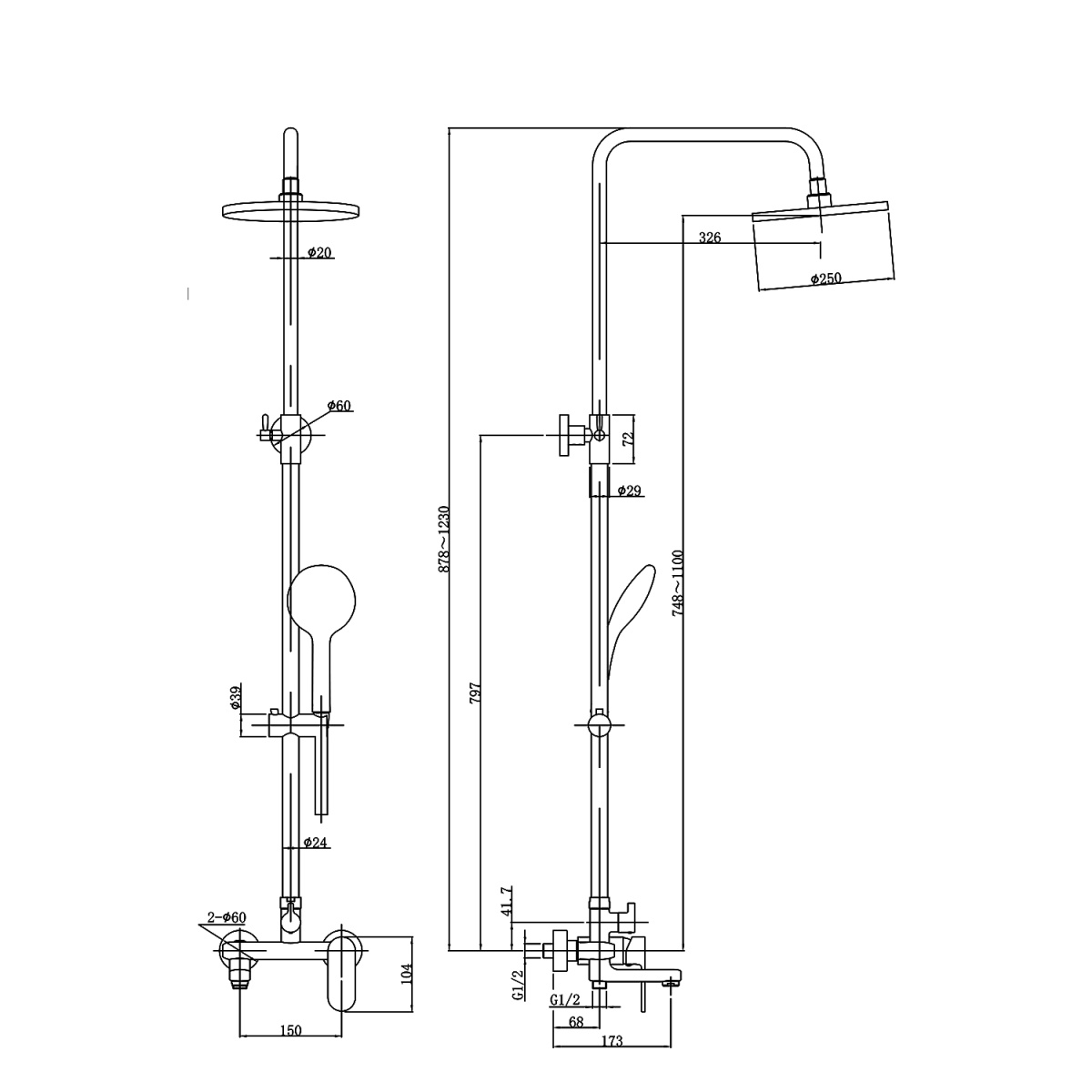 2) Круглый верхний душ , диаметр 25 см., материал ABS -пластик.
