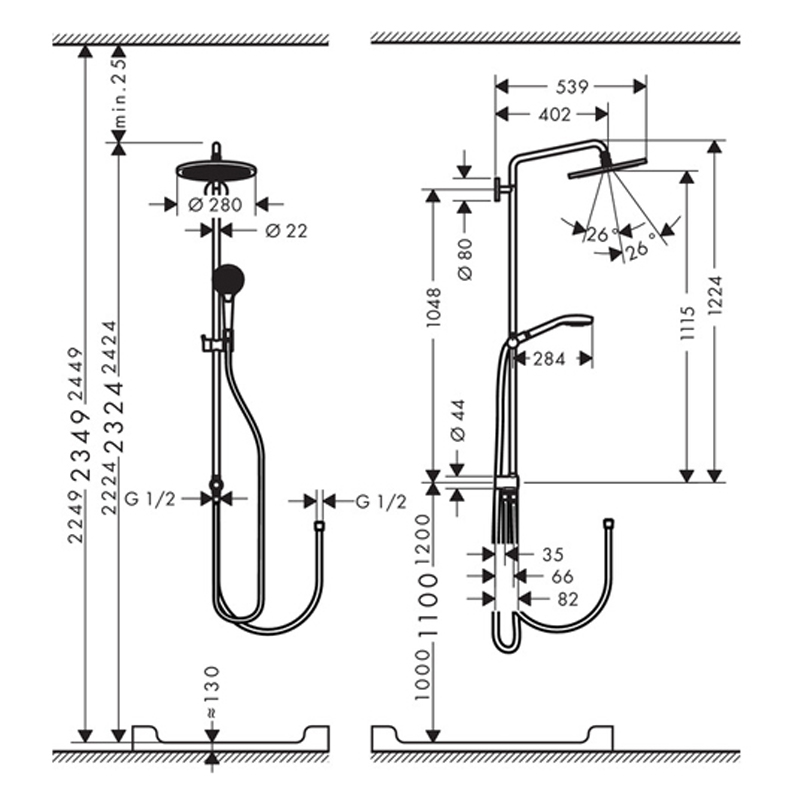 Размер ручного душа мм