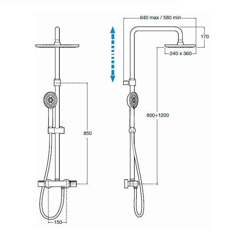 Душевая колонна Roca EVEN‐T Square, с верхним душем и термостатическим смесителем, регулируемая высо 7.5A20.8.0C0.0
