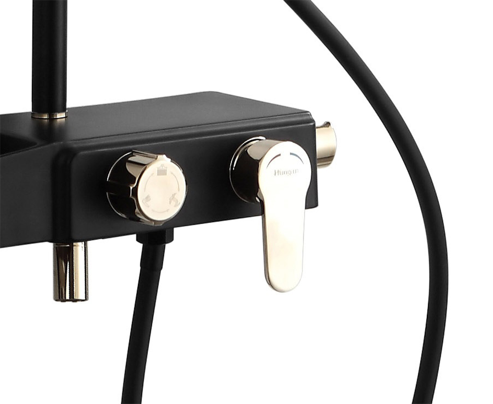 Душевая система AZARIO с поворотным изливом, керамический картридж, черный/золото AZ-801-2