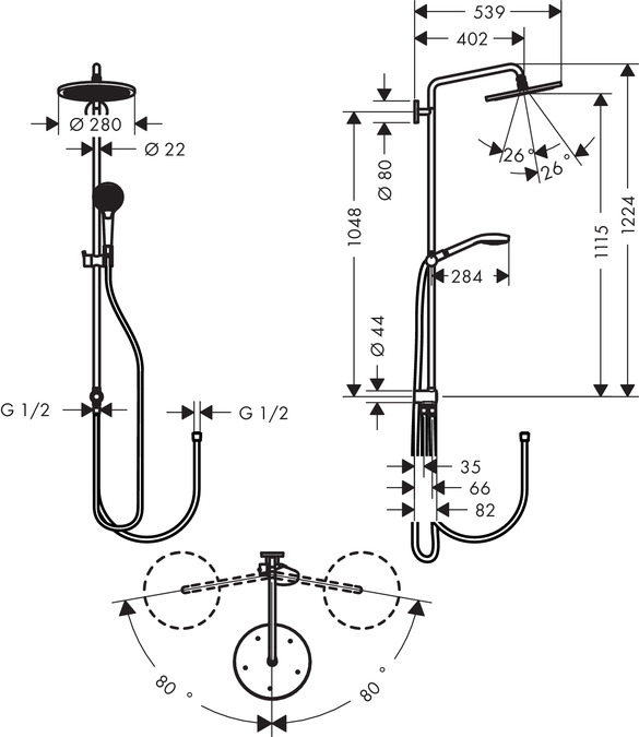 состоит из: верхний душ, Ручной душ, шланг для душа,