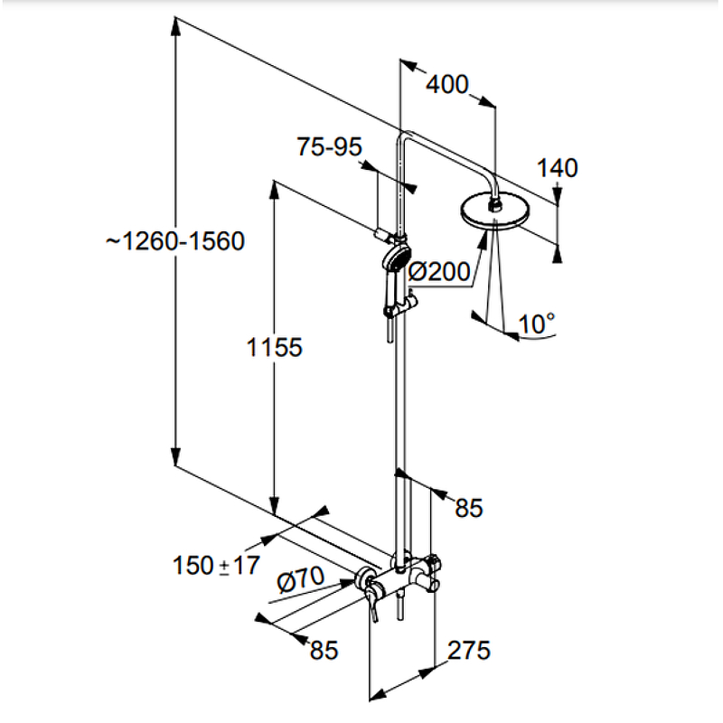 Поворотный (влево-вправо), регулировка наклона верхнего душа на 10 градусов.