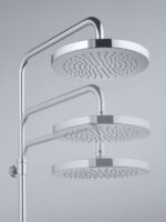 Диаметр верхнего душевого диска 20 см. Шарнирное крепление позволяет менять угол потока воды.