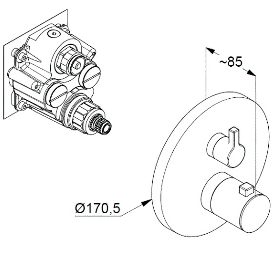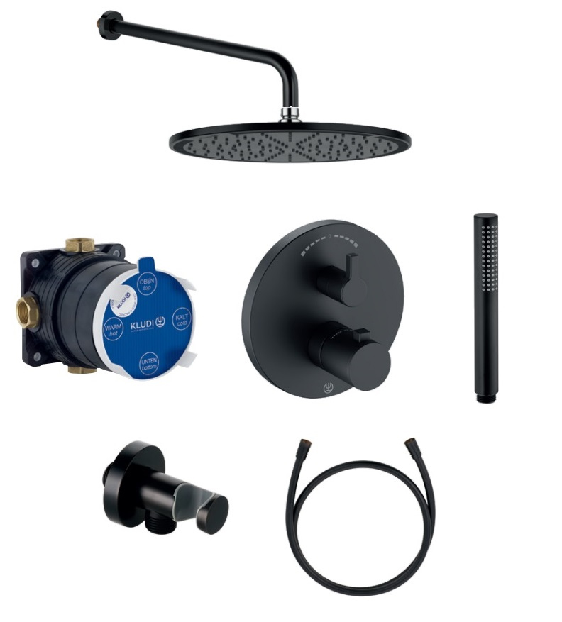 Верхний душ, Держатель для душа, Душевая лейка, Душевой шланг, Комплект креплений, Кронштейн для верхнего душа, Скрытая монтажная часть, Смеситель, Шланговое подключение