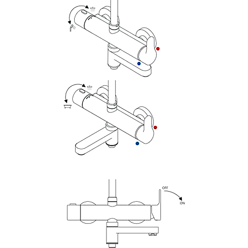 CoolFeel – регулятор температуры слева уменьшает чрезмерный нагрев поверхности смесителя.