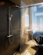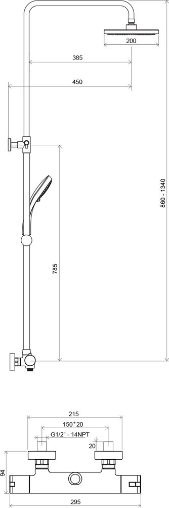 – исполнение: диаметр верхнего душа 20 см; душевая штанга поворачивается в разные стороны