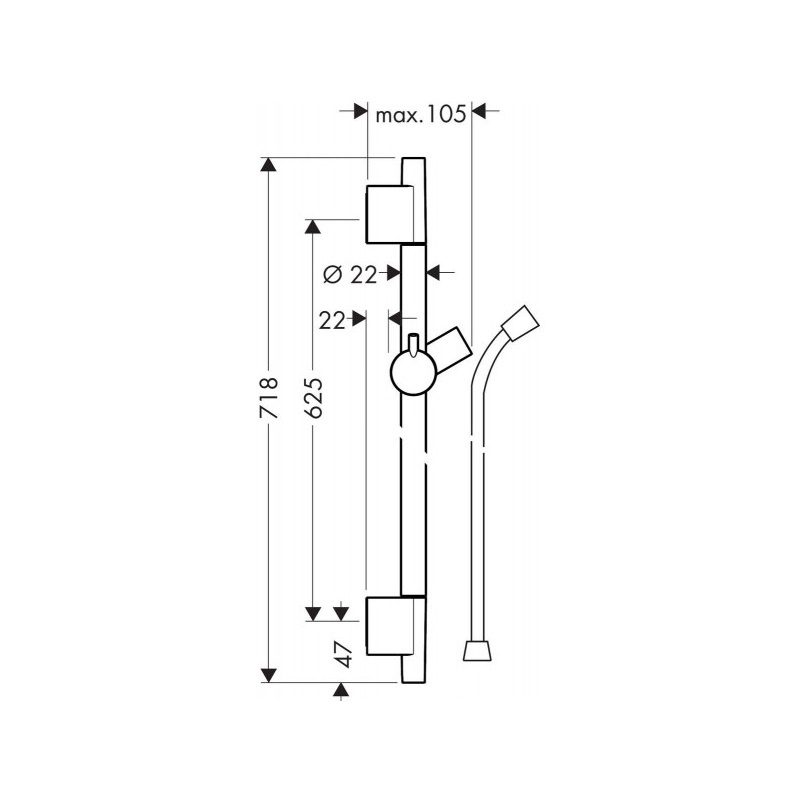 Состоит из: душевая штанга, держатель для душа, ползунок.