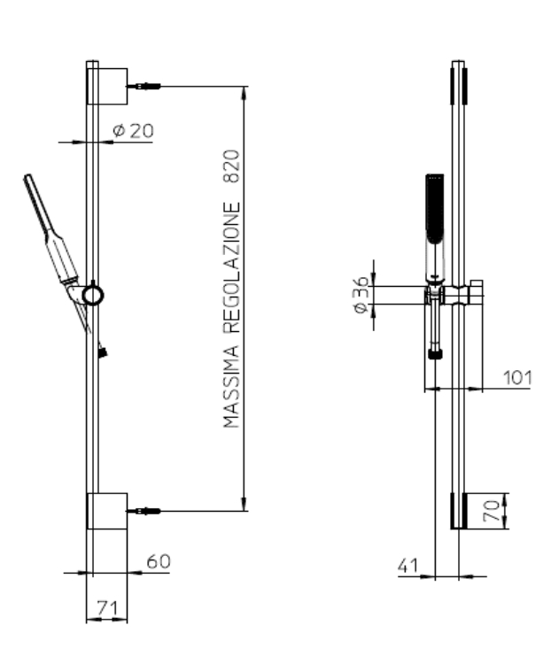 -Ручной душ-палочка APICE SLIM 29 мм x 29 мм х 231 мм