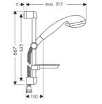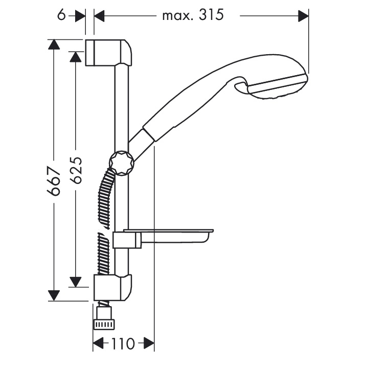 Ручной душ Croma 28573000: 75 мм, 3 вида струй, переключение типов струи с помощью вращающегося душевого диска, максимальный расход воды 16 л/мин при 3 бар, со стороны душа упорный подшипник, предотвращающий неприятное перекручивание душевого шланга;