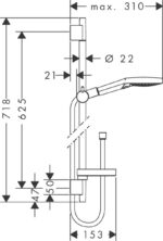 Состоит из: ручной душ, душевая штанга, шланг для душа, мыльница.