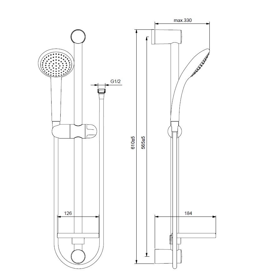 VIDIMA FRESH M Душевой гарнитур (1-функциональная лейка 100 мм, 8 л/мин., пластик, штанга 600 мм (+/-5 мм), Ø 24 мм, латунь, шланг с силиконовым покрытием Ultraflex 1750 мм, пластик, пластиковый держатель лейки, прозрачная мыльница в комплекте)