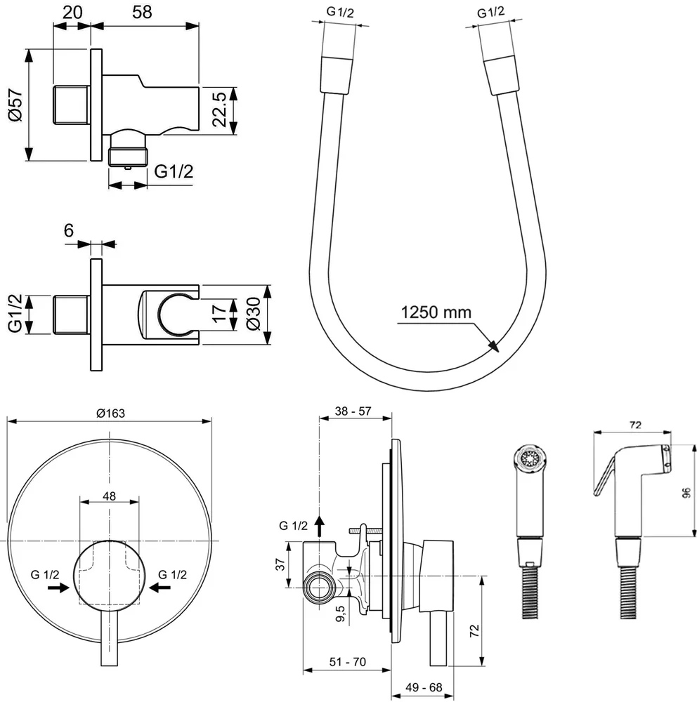 Гигиенический душ Ideal Standard IDEALSPRAY со смесителем, матовый черный BD651XG