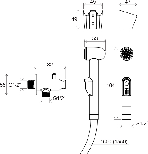 исполнение: с ручным гигиеническим душем; вентиль выступает в качестве держателя гигиенического душа