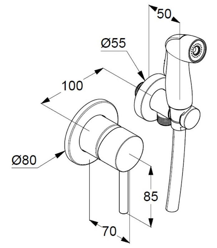 В комплекте поставки: гигиенический душ, смеситель (внешняя и внутренняя часть), держатель лейки, душевой шланг.