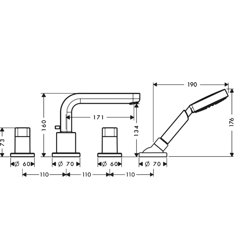 Hansgrohe Metris S Смеситель на край ванны, на 4 отверстия, ½’ 31446000