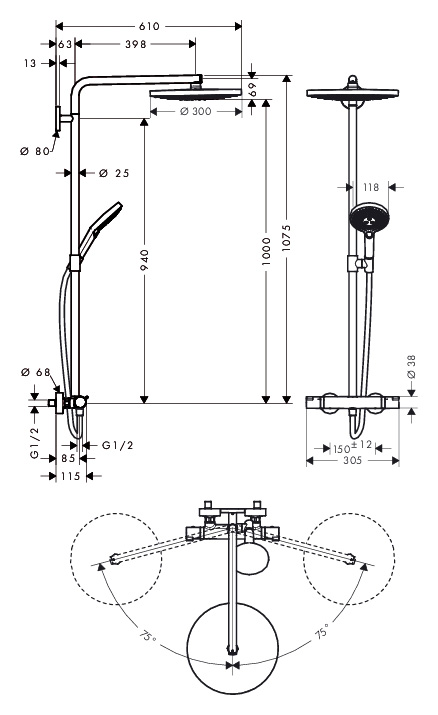 Hansgrohe Raindance Select S 300 2jet Showerpipe, 1/2, белый/хром 27133400