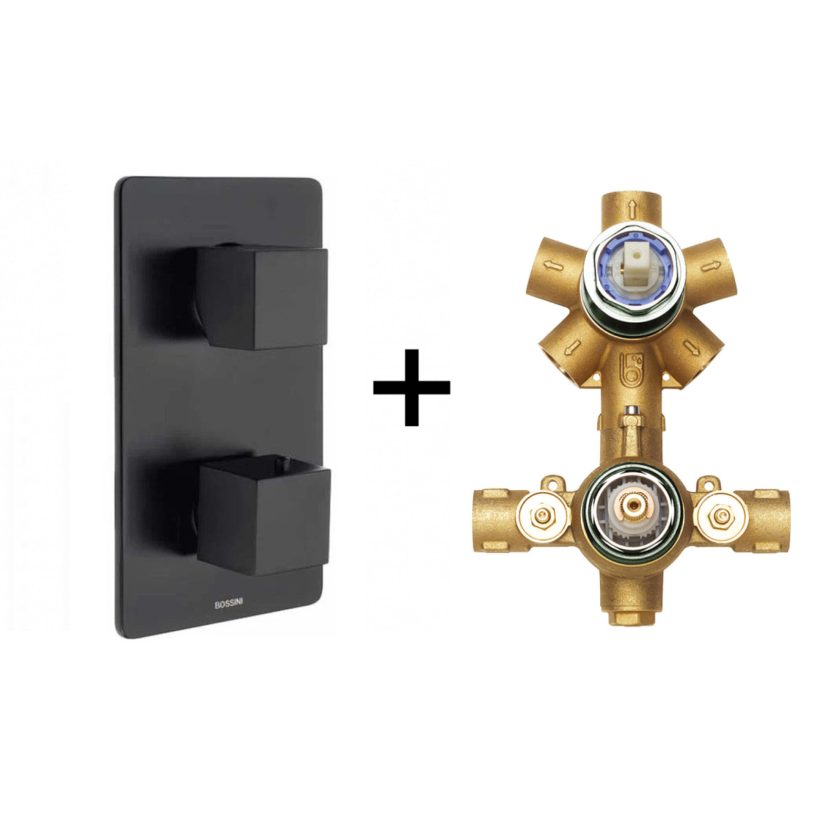 Комплект Bossini CUBE Смеситель для душа, встраиваемый, термостат, черный матовый + Универсальная вс Z00061.073+Z00125
