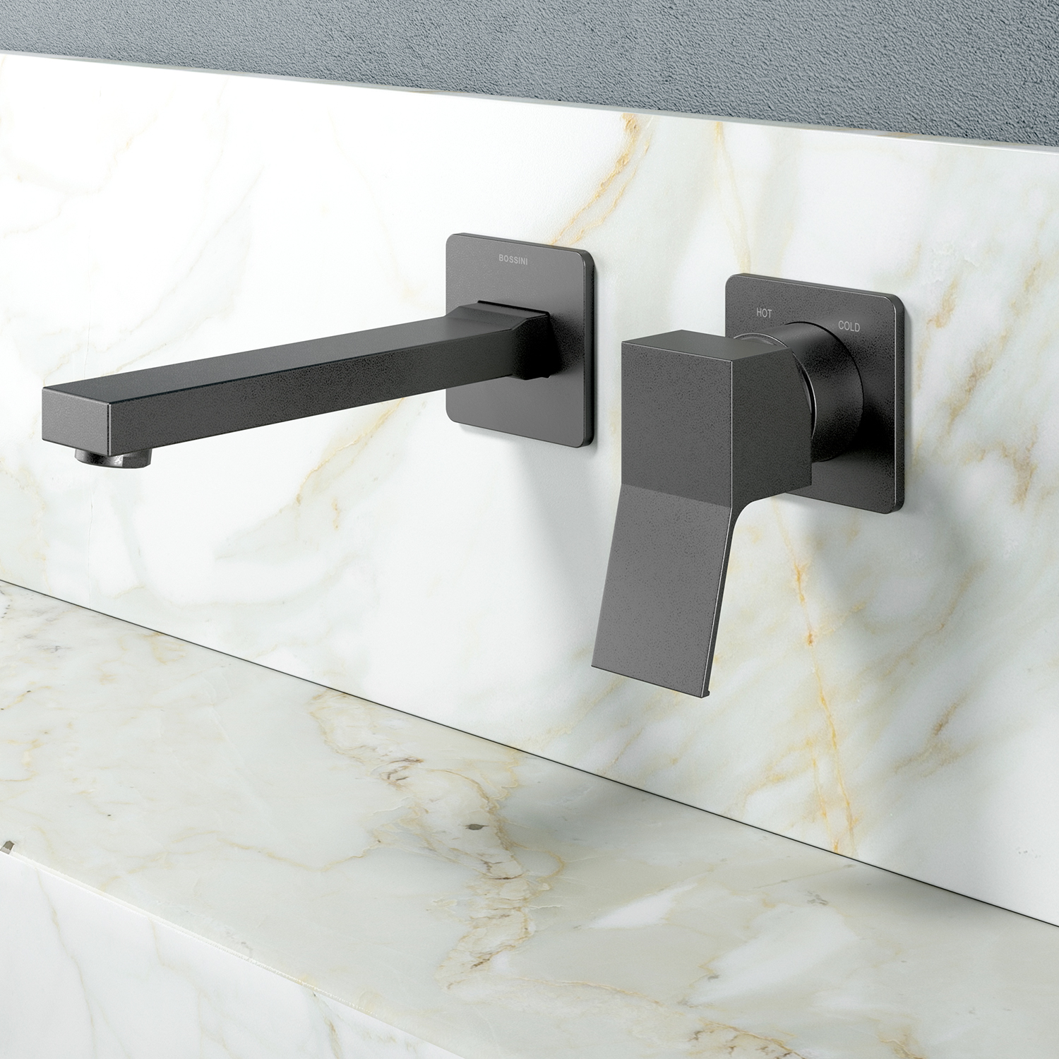 Комплект Bossini TEO Смеситель для раковины, настенный, встраиваемый, с изливом 18.5 см, черный мато Z00731.073+Z00801