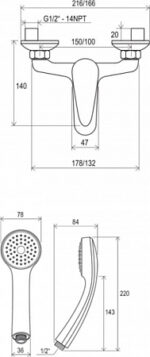 Душевой гарнитур – шланг из прочного пластика 150 см, держатель, лейка (диаметр 68 мм) 901.00