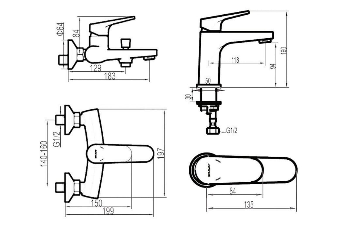 Набор смесителей для ванны и умывальника Bravat Eler, хром F191238CP-SET