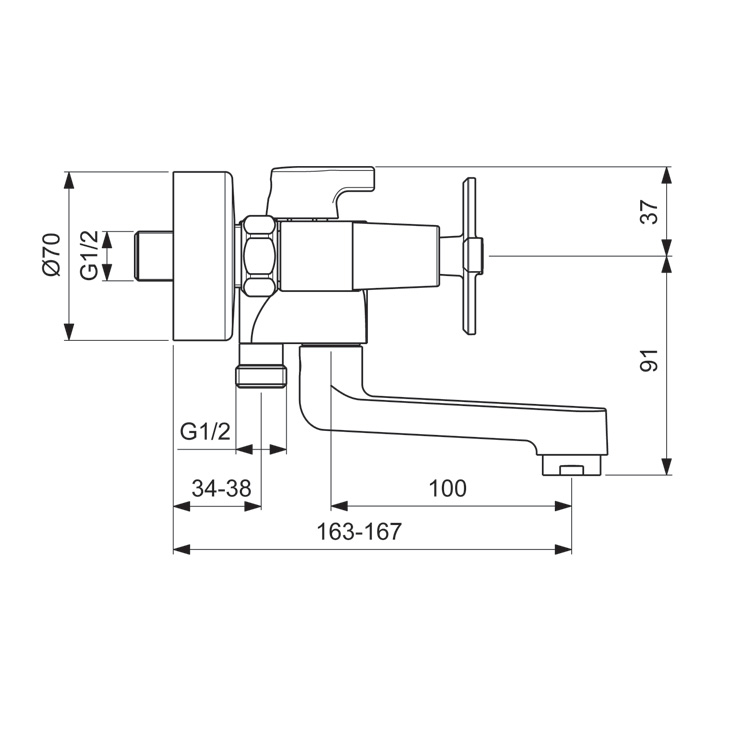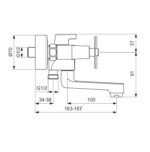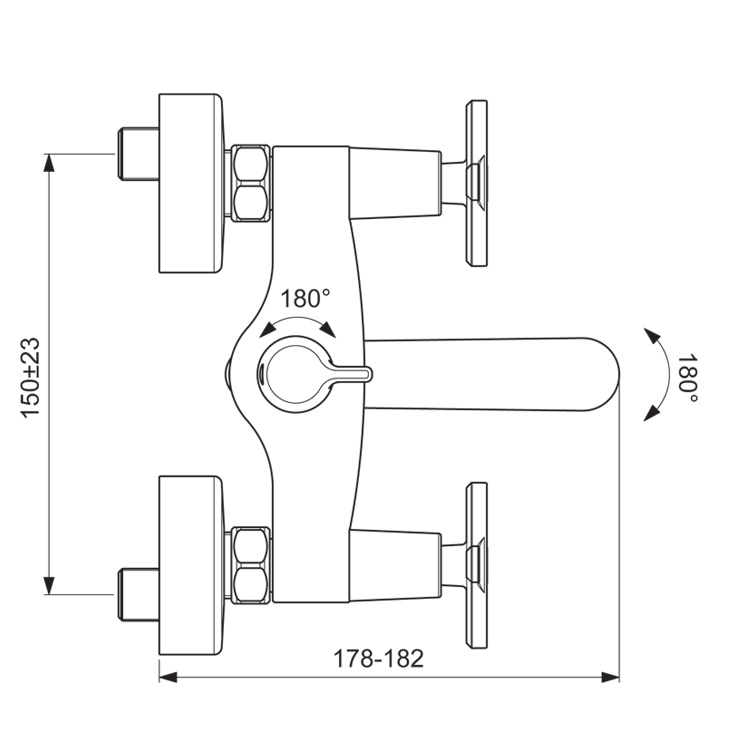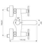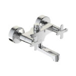 VIDIMA ART Настенный смеситель для ванны/душа, с керамическим переключателем, монтаж на стандартных эксцентриках (в комплекте: эксцентрики, металлические отражатели, уплотнительные прокладки), литой поворотный излив, длина излива 100 мм, от стены 163 ÷ 167, угол поворота 360˚, аэратор Perlator, керамические кранбуксы производства Германии с поворотом 180˚, металлические рукоятки, индикатор холодной/горячей воды, ручное переключение ванна/душ, без душевого гарнитура