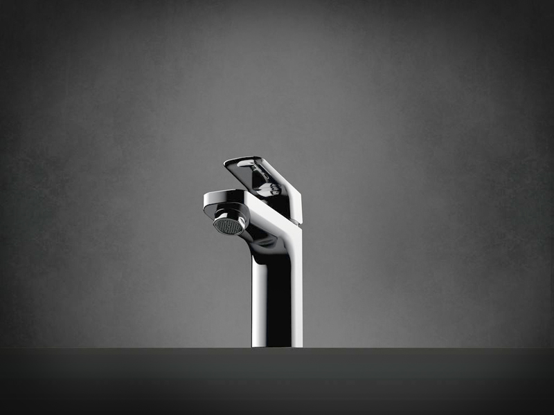 CERAPLAN III SLIM Grande Однорукоятковый смеситель для умывальника с металлическим донным клапаном, керамический картридж FirmaFlow 38 мм с функцией HWTC (ограничение максимальной температуры горячей воды), гибкая подводка G3/8″ (шланги PEX), система монтажа EASY-FIX (облегченный монтаж), аэратор Cascade M24 x1, металлическая рукоятка с индикаторами горячей / холодной воды, металлический донный клапан