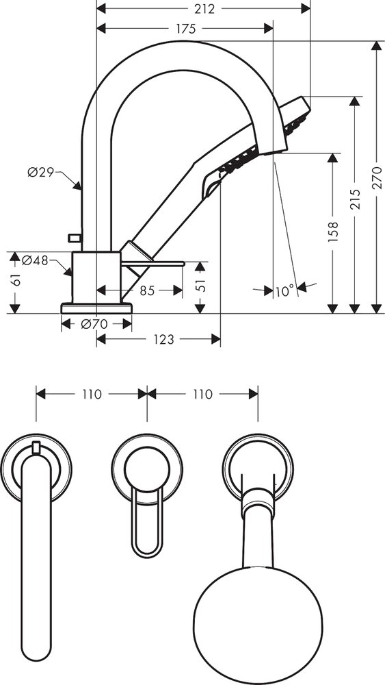 Смеситель Axor Uno на борт ванны, хром 38436000