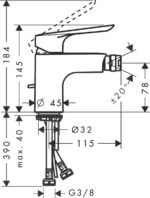 Состоит из: однорычажный смеситель для биде, слив/перелив.