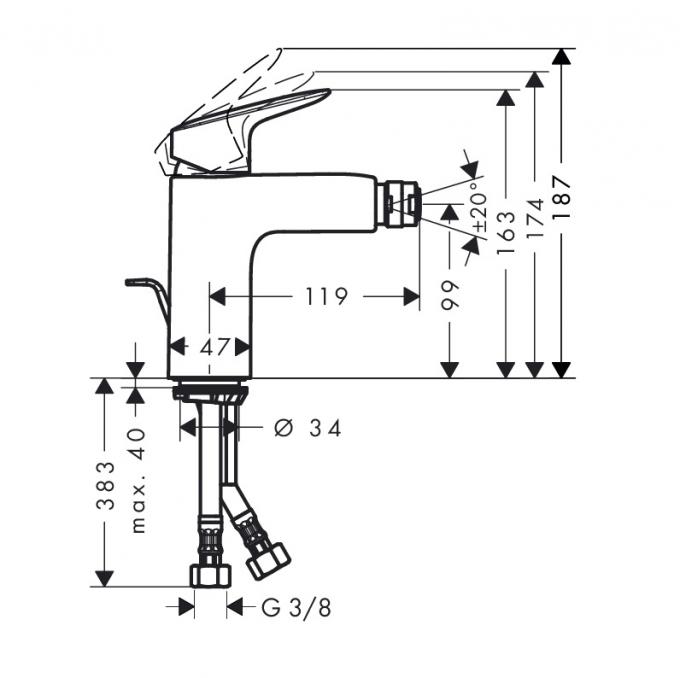 Смеситель для биде Hansgrohe Logis, однорычажный, со сливным гарнитуром, хром 71204000